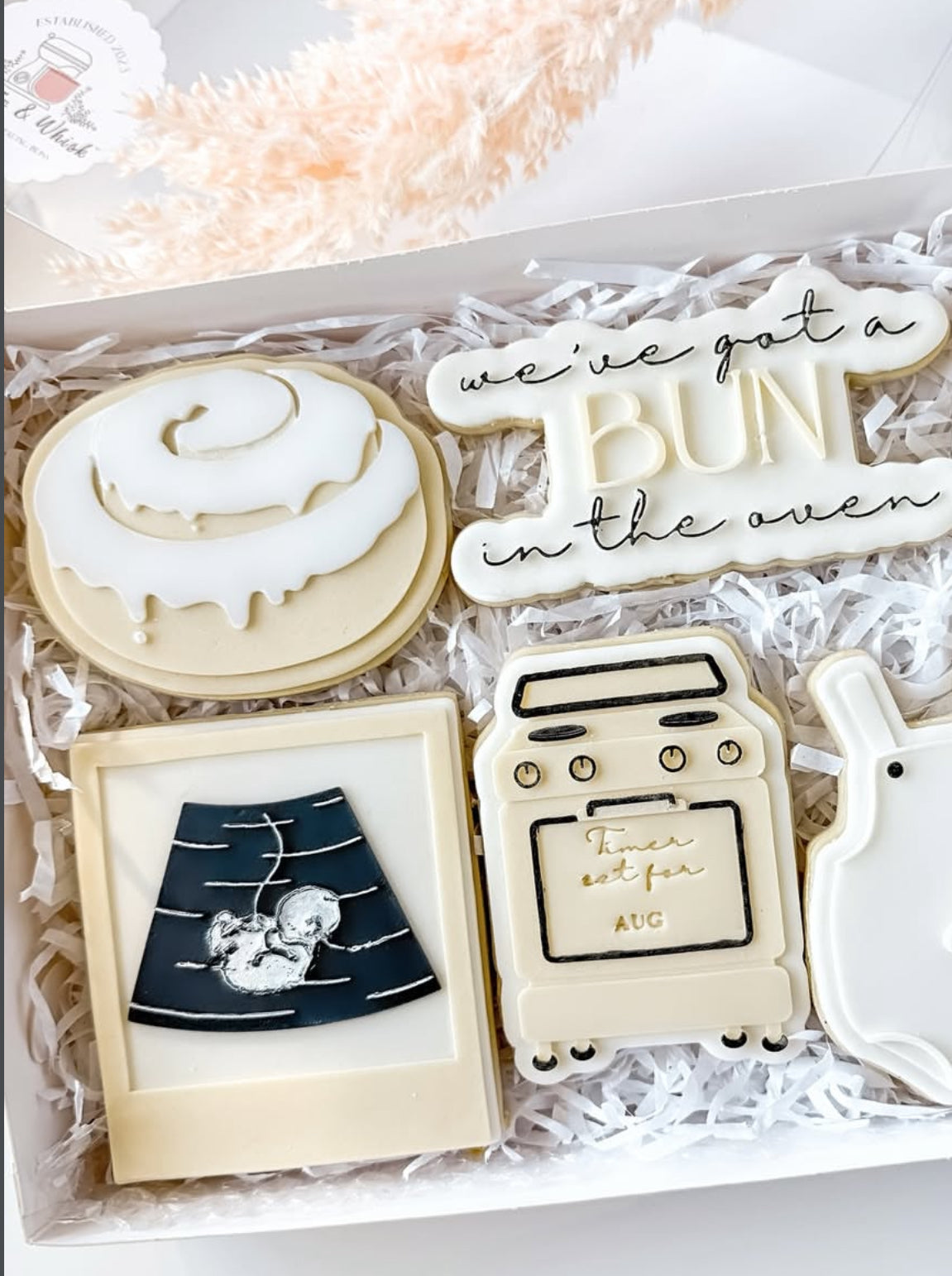 This stamp is just perfect for a pregnancy announcement! Comes with a matching cutter. There is also room to personalised text at the bottom by adding a name or date. Please remember to hand wash only in warm water below 60 degrees in temperature.