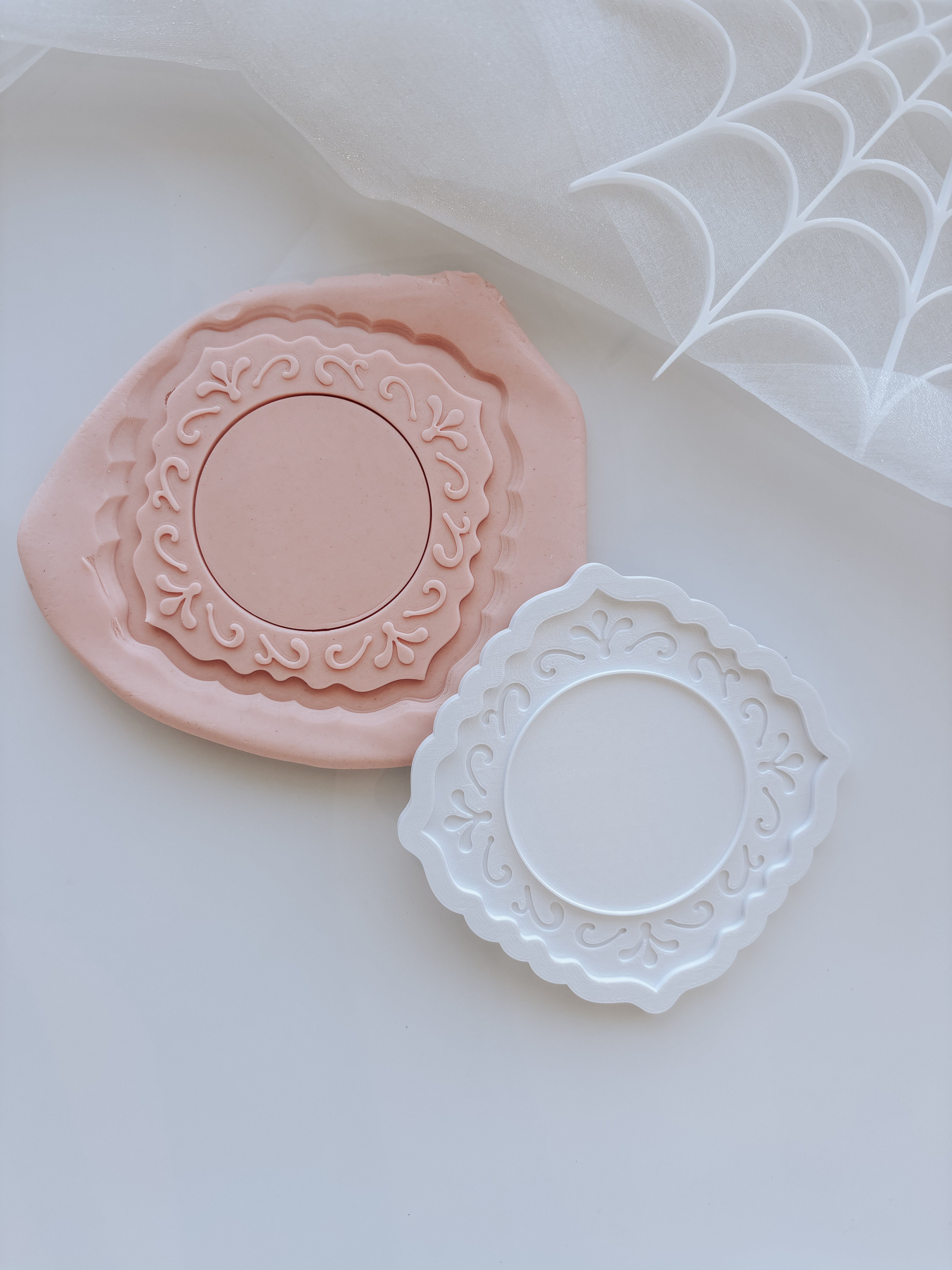 1. Prep Your Stamp: Lightly dust your stamp with cornflour using a fluffy brush, ensuring all the small details are evenly coated. This prevents sticking and ensures clean impressions.