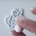 1. Prep Your Stamp: Lightly dust your stamp with cornflour using a fluffy brush, ensuring all the small details are evenly coated. This prevents sticking and ensures clean impressions.