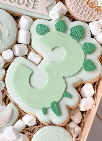What's better than a dino theme? A custom made dinosaur number complete with spines and a tail. Can be made as any number, please just add this as a note upon checkout. Just under 10cm in size. Comes with a matching cutter. Please remember to hand wash only in warm water.