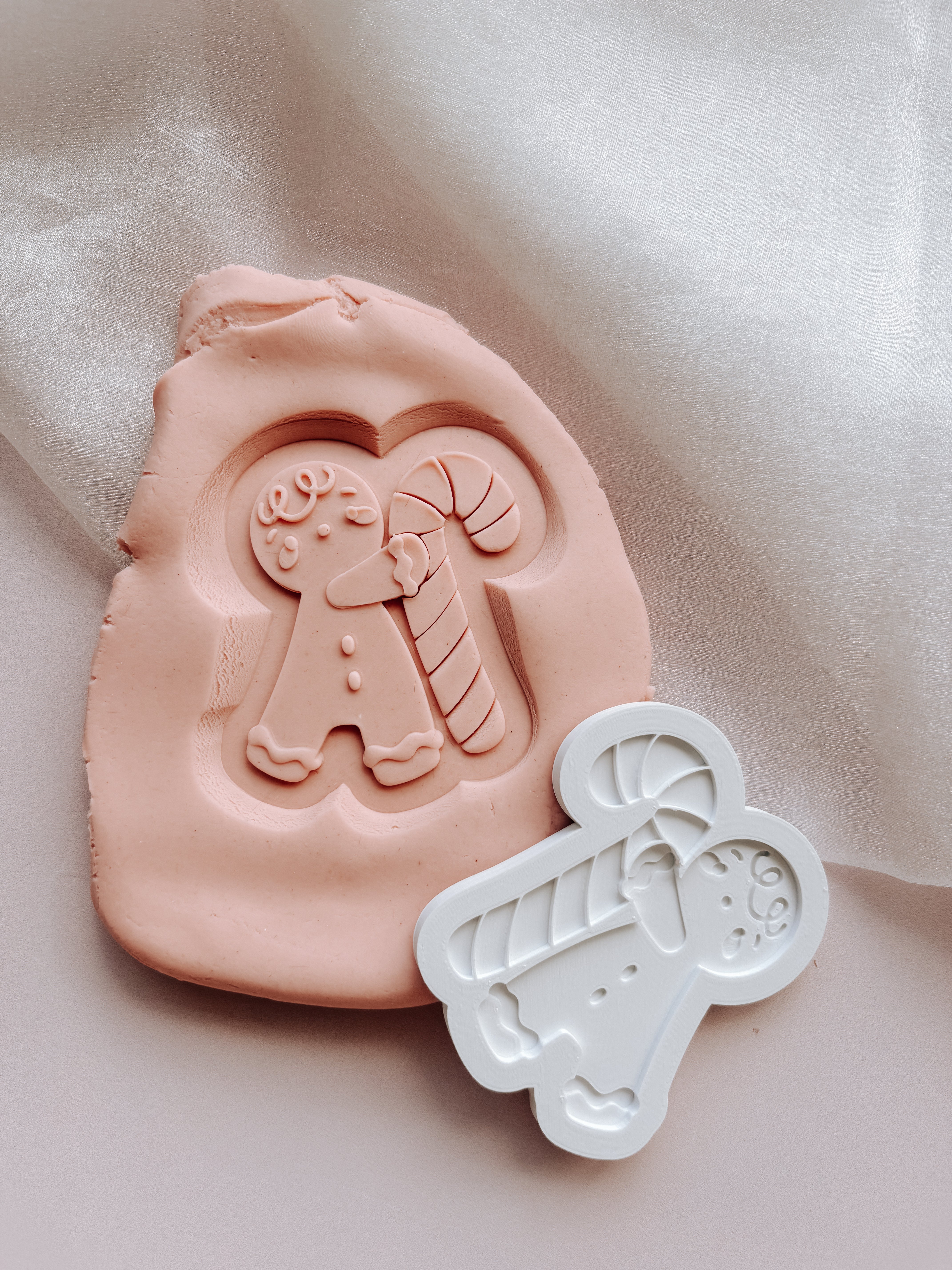 Gingerbread Boy Holding candy cane debosser stamp and cutter