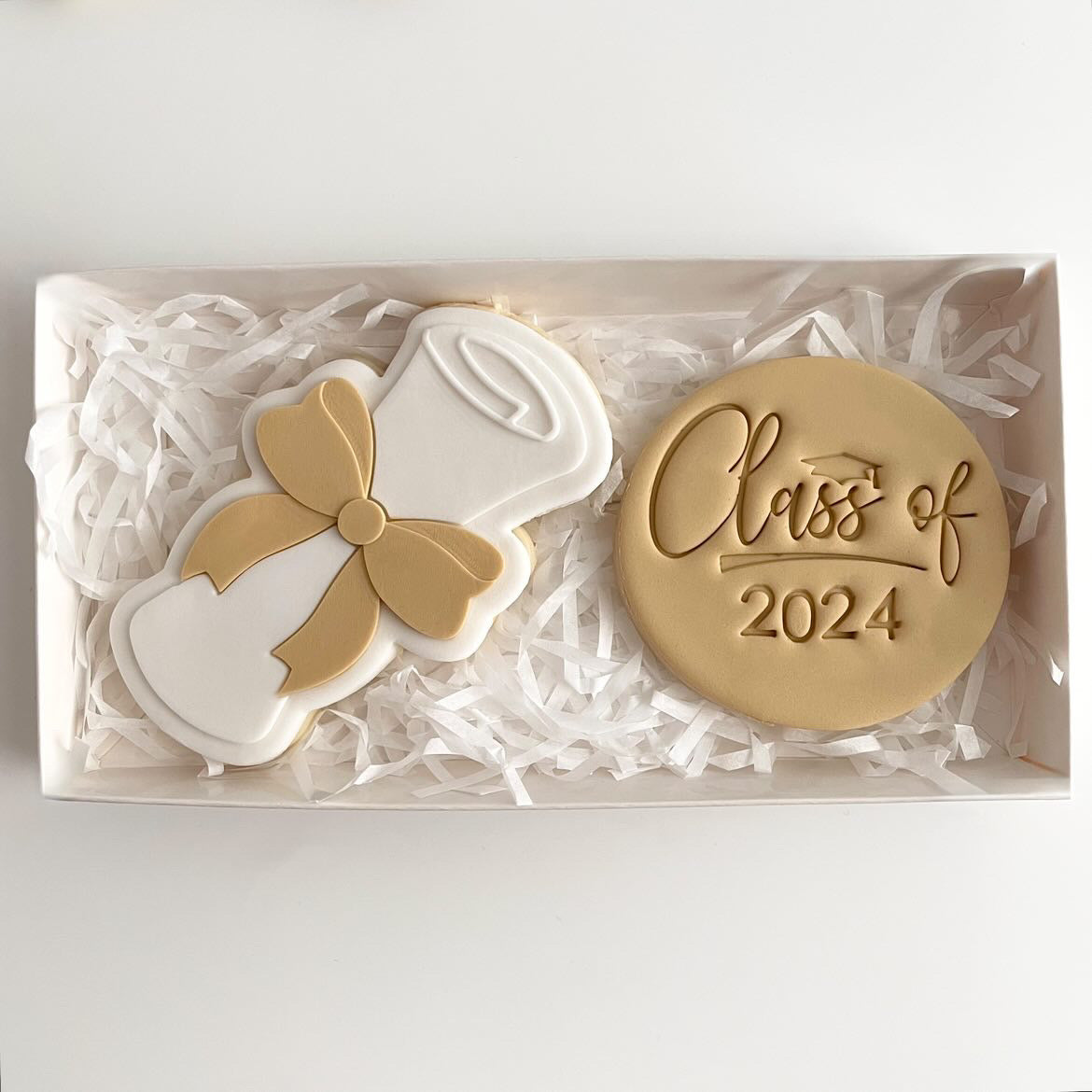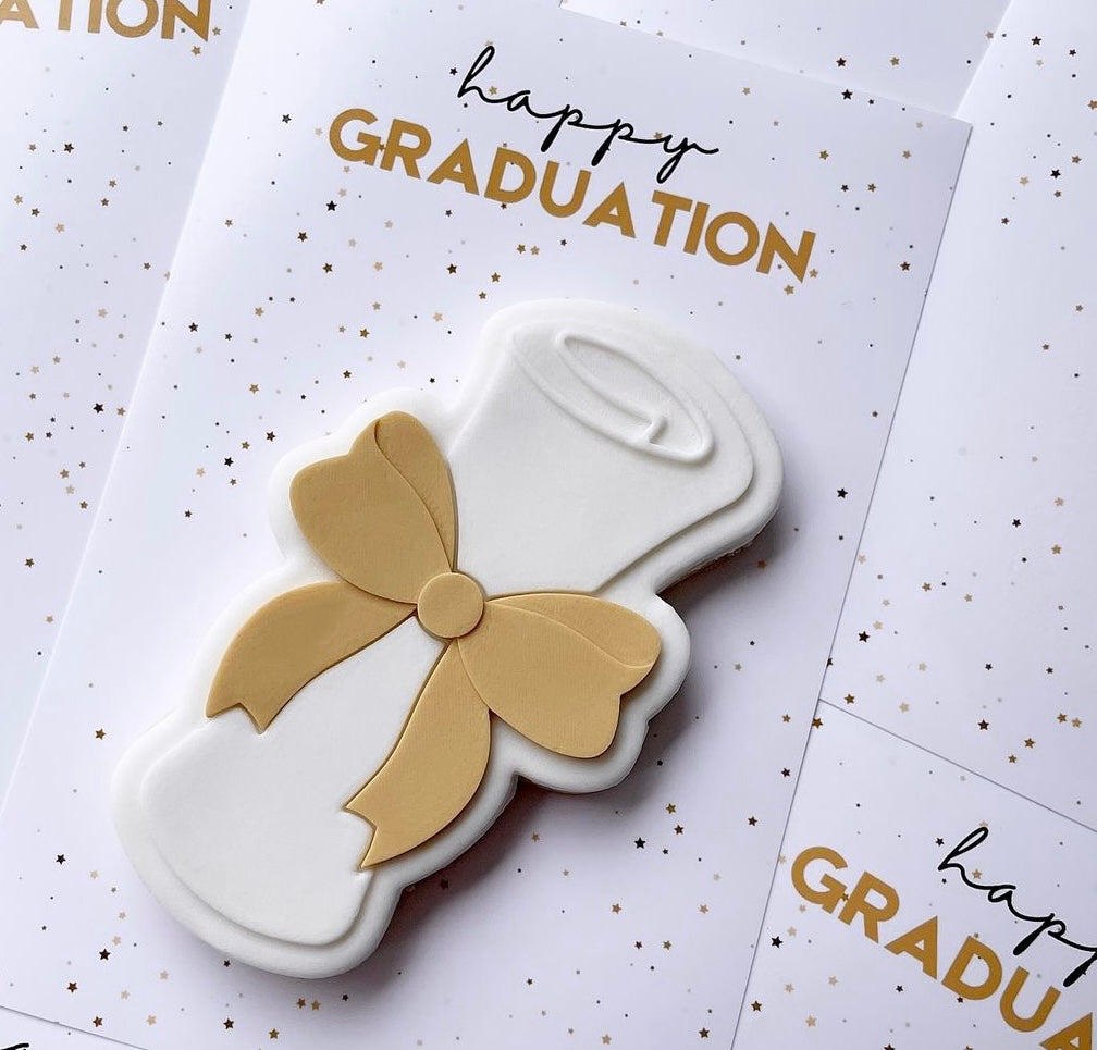 Celebrate graduation in style with this simple but super elegant design. Use a font set to add the year or a name to add a personalised touch. Comes with a matching cutter and is 8.2cm in size. Please remember to hand wash only in warm water below 60 degrees in temperature and do not soak.