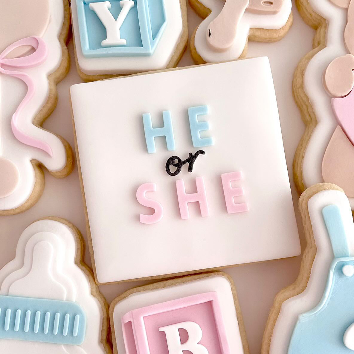 Celebrate the big reveal with this charming gender reveal cookie stamp and cutter set! This set includes a 10cm x 10cm "He or She" debossed plate, perfect for adding a fun touch to your cookies. The versatile plate works with a variety of cutters, allowing you to create personalized treats for your special occasion. Whether you're baking for a baby shower or simply sharing the exciting news, this set adds a delightful, customizable touch to your celebration. Perfect for two toning! Please remember to hand wash only in warm water below 60 degrees in temperature and do not soak.