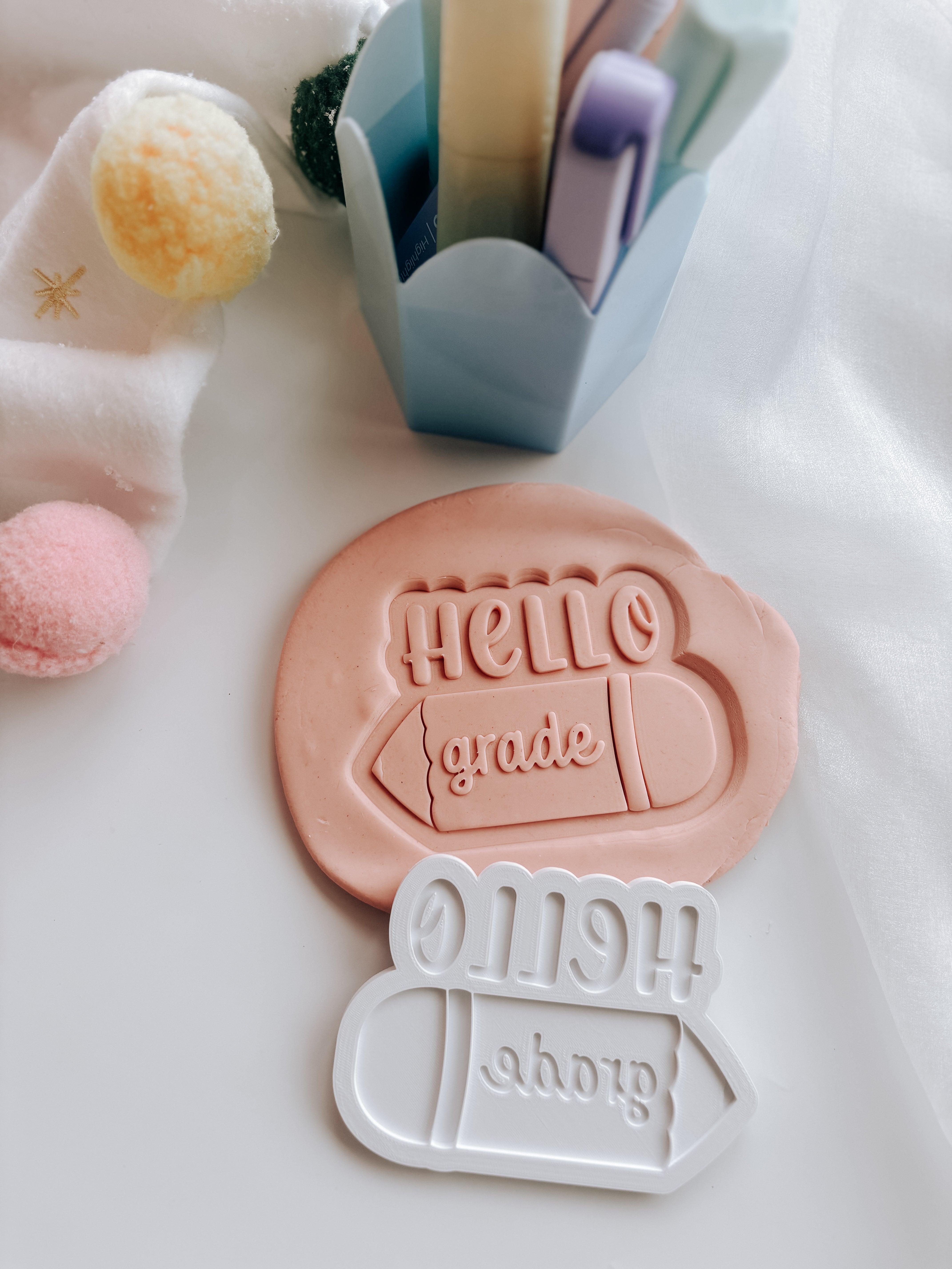 What a great all rounder! Whether it be for teacher gift sets or back to school themed celebrations, this fun  design is a must have! Use it time and time again by simply changing the number on the eraser. Comes with a matching cutter and is 8.8cm x 9.1cm in size. Please remember to hand wash only in warm water below 60 degrees in temperature and do not soak.