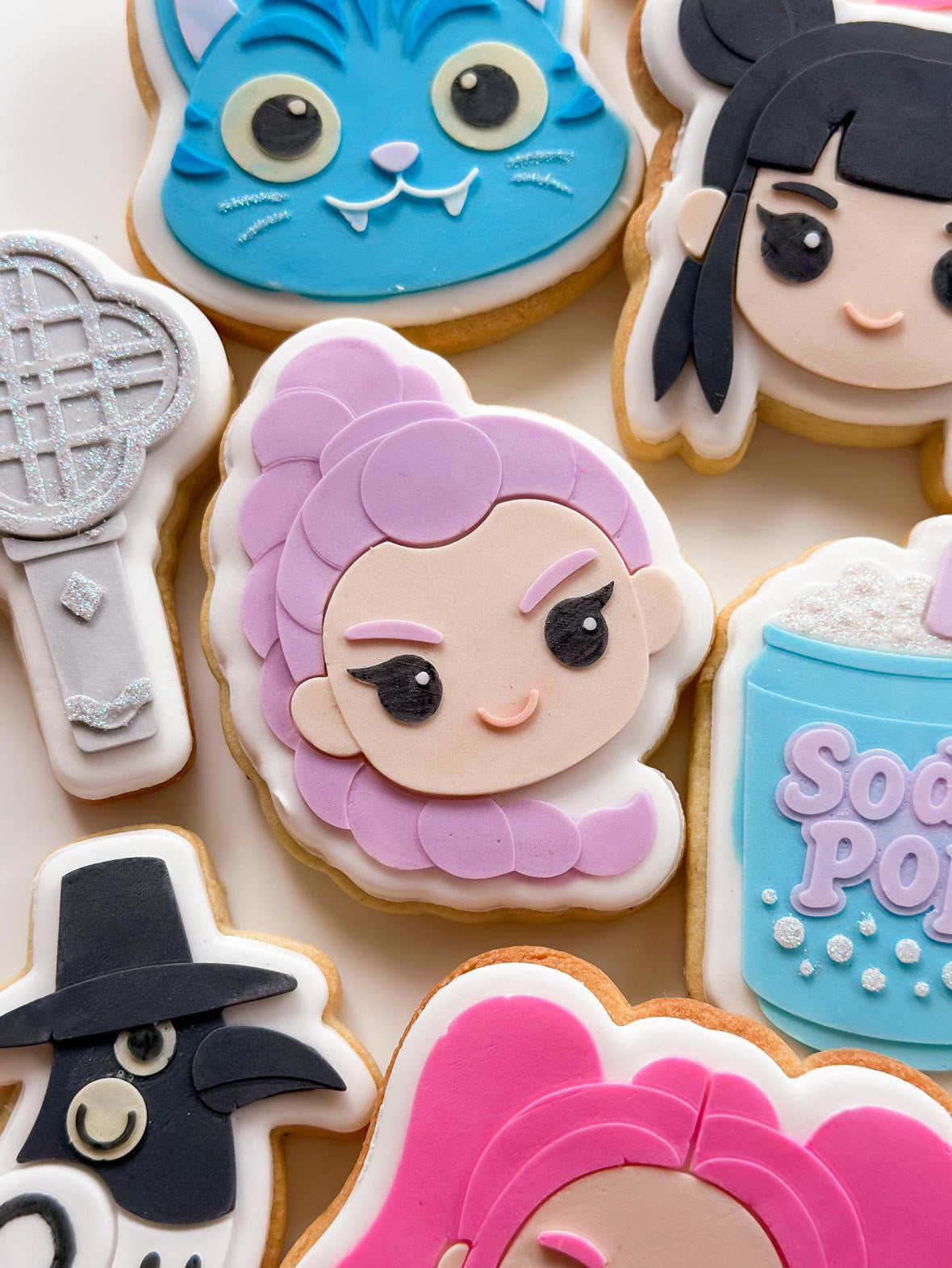 Unleash bold creativity with our K-Pop Demon Hunters Cookie Stamp & Cutter Collection a high-impact range inspired by the electrifying world of K-pop aesthetics fused with dark fantasy flair. Designed for cookiers who love statement bakes, this collection features crisp, clean embossing, sharp cutter edges, and dramatic character details perfect for K-pop themed cookies, anime-inspired desserts, Halloween bakes, and edgy celebration sets. Ideal for K-pop fans, pop culture lovers, and custom cookie artists, this collection brings together trend-driven design, premium functionality, and unforgettable style because your cookies deserve main-character energy.