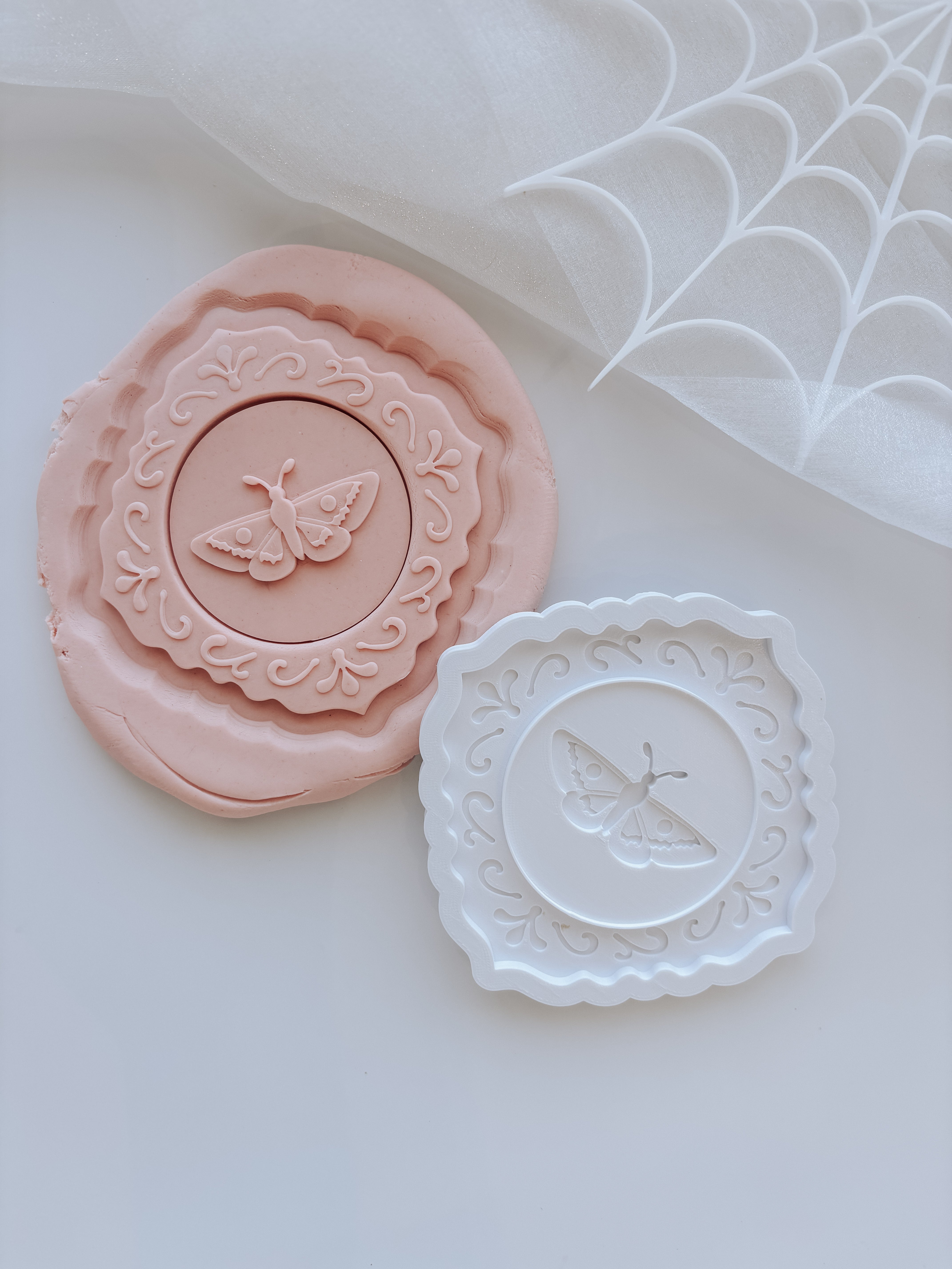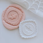1. Prep Your Stamp: Lightly dust your stamp with cornflour using a fluffy brush, ensuring all the small details are evenly coated. This prevents sticking and ensures clean impressions.