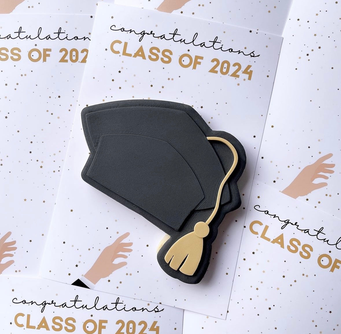 Celebrate graduation in style with this simple but super elegant design. Use a font set to add the year or a name to add a personalised touch. Comes with a matching cutter and is 8.2cm in size. Please remember to hand wash only in warm water below 60 degrees in temperature and do not soak.