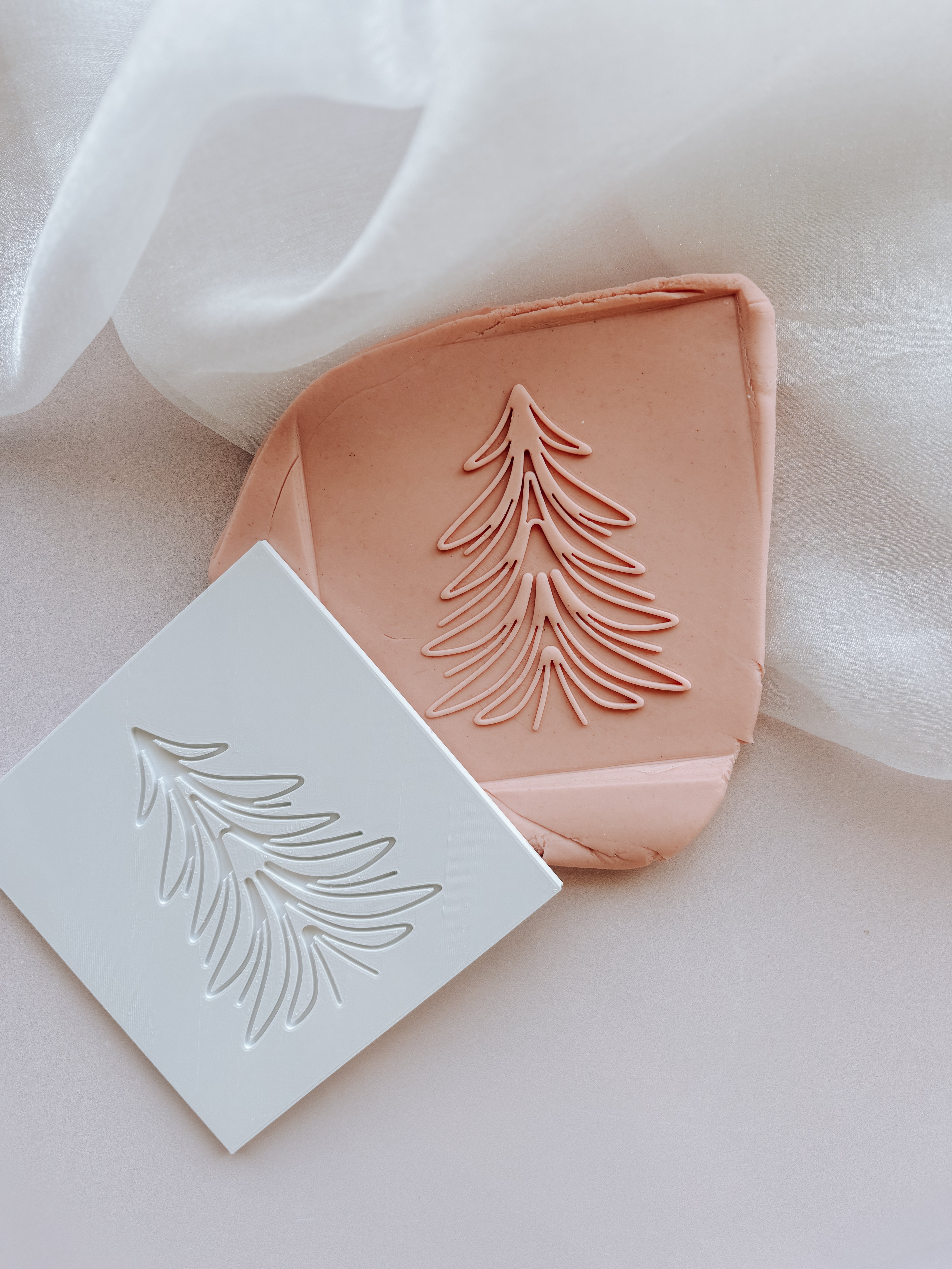 Simple Line Christmas Tree on plate debosser stamp and cutter