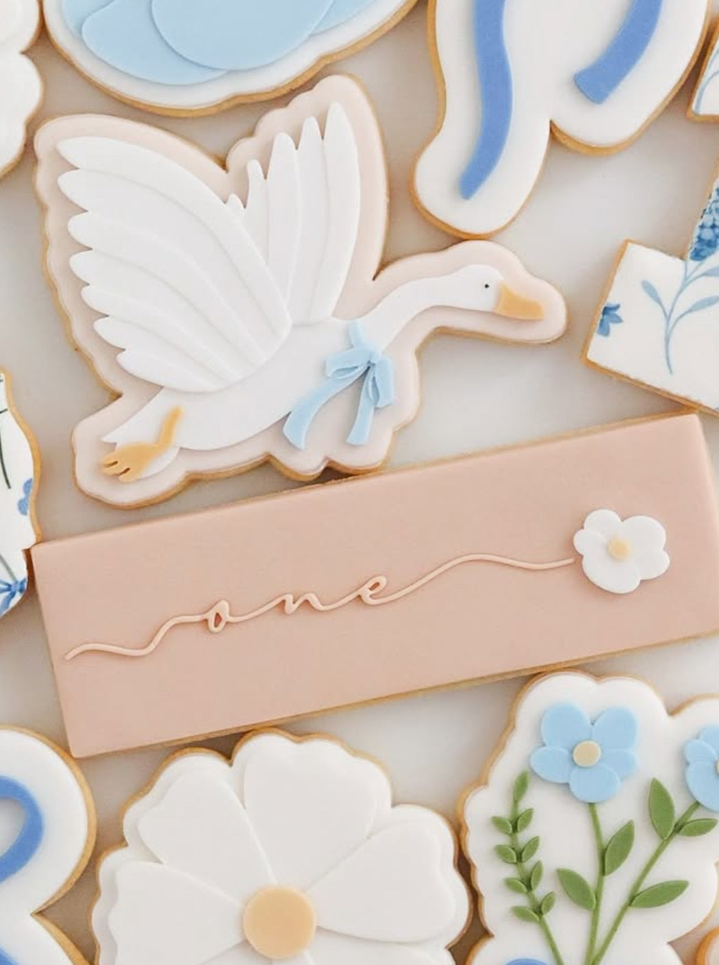 A gorgeous and versatile font stamp that emulates a balloon string to give an effortless and subtle detail to any set. Use the blank space on the top to add your own moulds or purchase one of our 'mini' sets to suit your theme as they are sold separately. Debosser plate is larger so you can use a range of cutters/ turn in vertically or horizontally.
