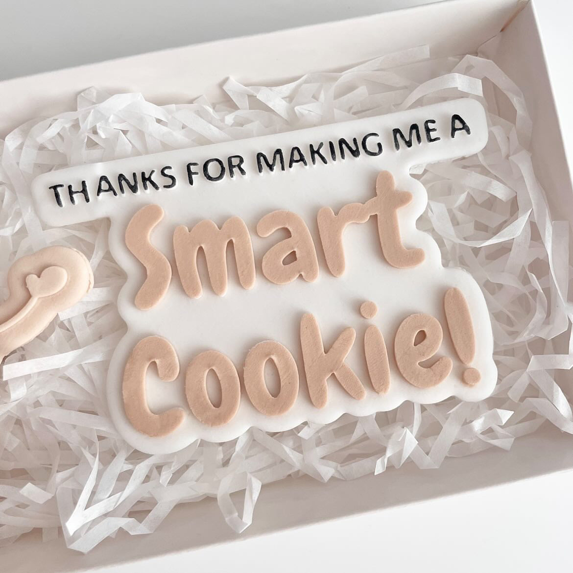 Celebrate your teachers in style with this simple but super elegant design. This cute “Thanks for making me a smart cookie!” Design is so easy to two tone. Comes with a matching cutter and is 8.9cm in size. Please remember to hand wash only in warm water below 60 degrees in temperature and do not soak.