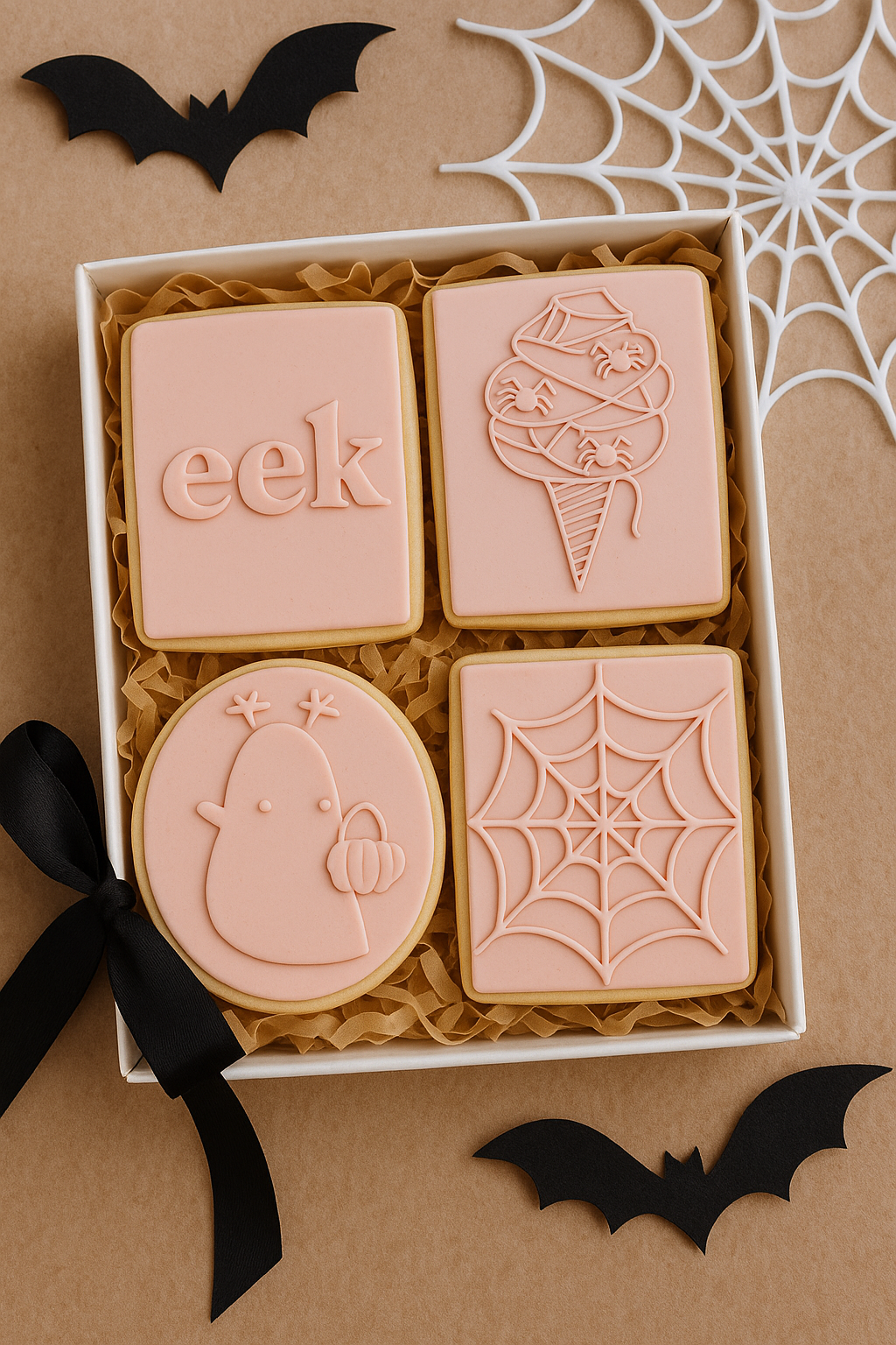 Our ultimate Halloween gifting box bundles are here to make spooky season baking effortless and fun! Each bundle includes 4 easy-to-use, beautifully detailed stamps and cutters designed to fit perfectly inside your favourite cookie boxes. With every design set on a neat rectangular base, they can be paired with a range of cutters you already own or the one provided, giving you maximum versatility while keeping your cookies looking polished and professional. Whether you’re gifting, selling, or simply treating yourself, these bundles are the perfect way to create a stunning Halloween set with ease.