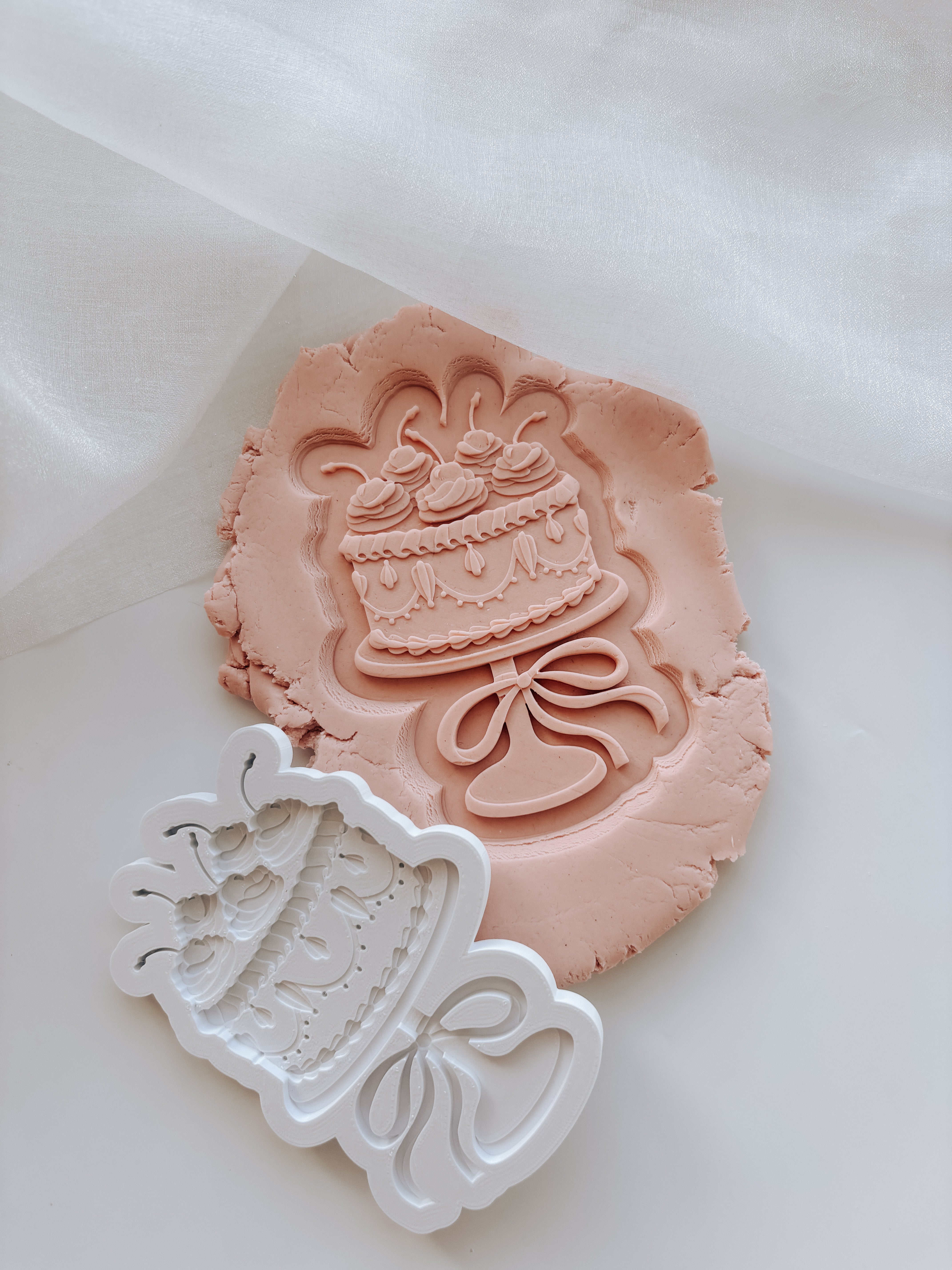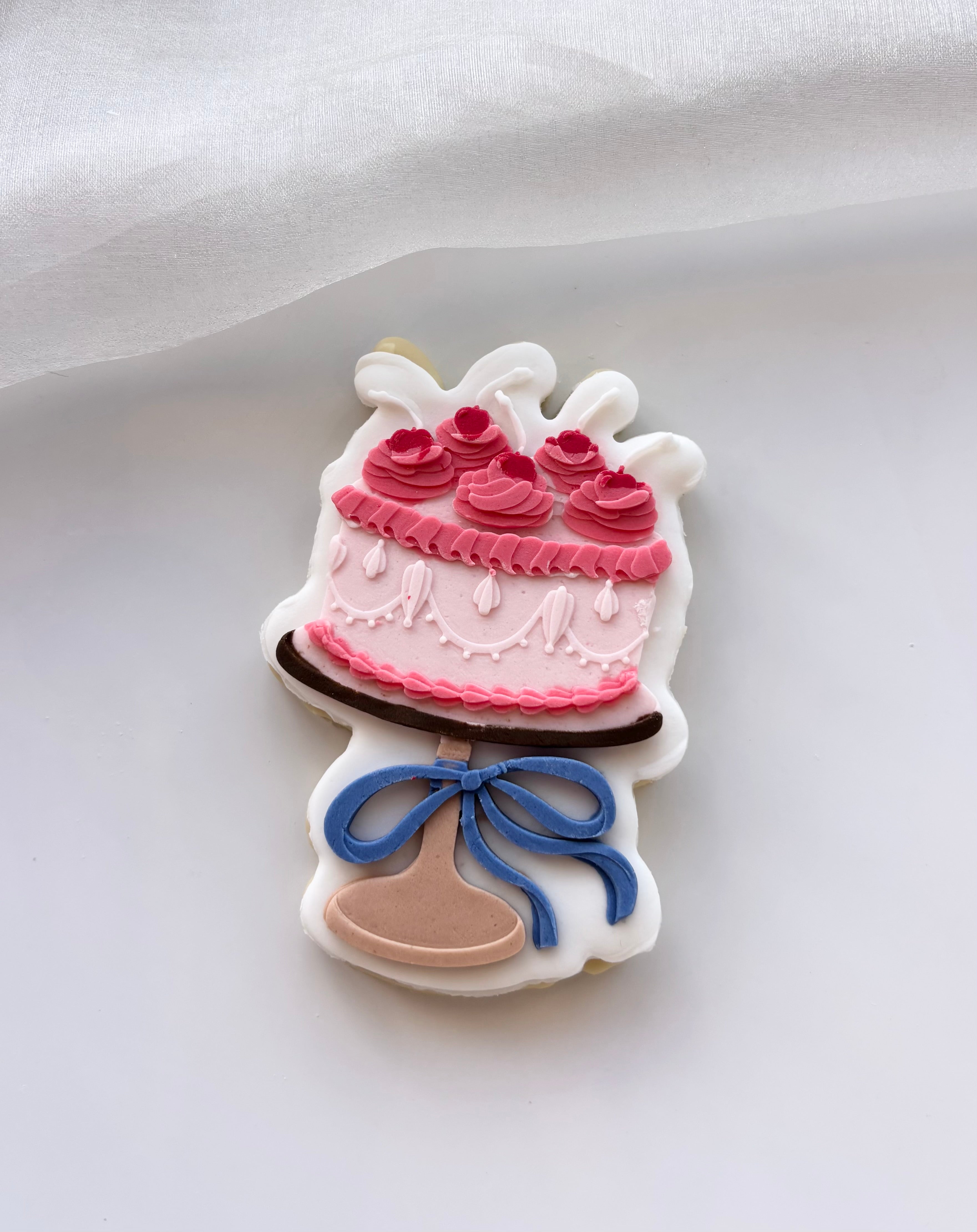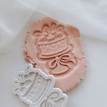 Vintage single tier cake with cream and cherries stamp and cutter